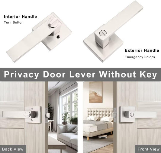6 Pack Probrico Satin Nickel Privacy Door Levers for Bedroom and Bathroom - Keyless Square Locksets with Heavy Duty Interior Hardware