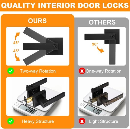 3 Pack Probrico Matte Black Square Privacy Door Levers - Heavy Duty Interior Handles with Keyless Locks for Bed/Bath - Reversible Handlesets