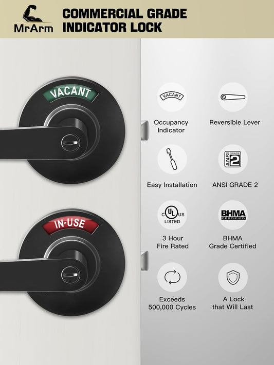 MrArm Privacy Indicator Lock and Lever - Grade 2 Commercial Door Handle for Public Restrooms in Restaurants, Hospitals, and Medical Offices - Matte Black