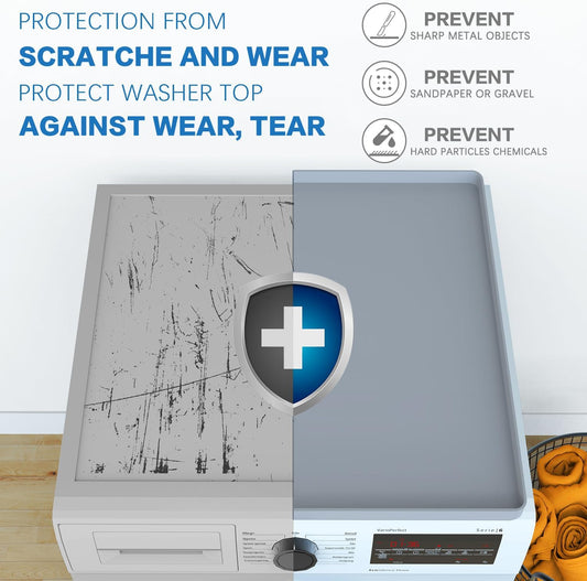 Set of 2 Gray Washer and Dryer Top Protector Mats - 26.5" x 26.5" Silicone Rubber Mats for Washing Machine and Dryer - Anti-Slip, Washable Laundry Room Accessories