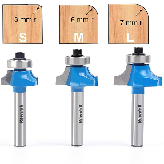 3Pcs Carbide Roundover Router Bit Set 1/4 Inch Shank - Edging Forming Bits with 1/8", 3/16", 1/4" Radius