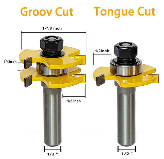 2 PCS Tongue and Groove Router Bit Set - 1/2" Shank, Adjustable T-Shaped Wood Router Bit for Woodworking - Mortise and Tenon Tools