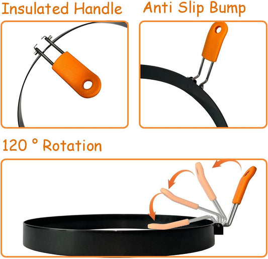 8" Stainless Steel Non-stick Omelette Ring Set for Griddle - 2 Pack Large Omelet Rings with Silicone Handle