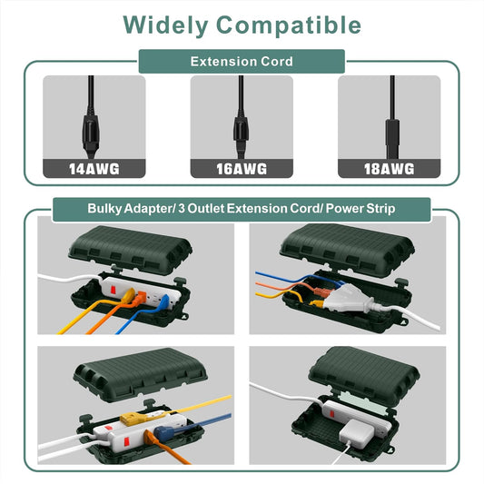 Waterproof Electrical Connection Box - Medium (10.5*5.3*4 inch) for Outdoor Use with IP54 Protection - Ideal for Extension Cords, Holiday Lights, and Timer Outlets