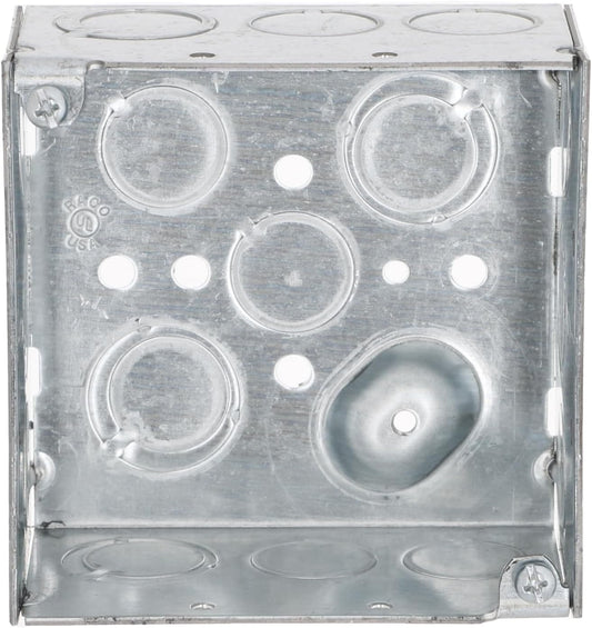 25-Pack RACO 232 4 in. Square Electrical Box, 2-1/8-Inch Deep with 1/2-in. and 3/4-in. Knockouts - Welded Gray Box