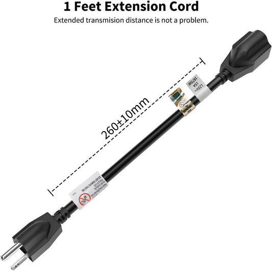 15 Amp 1-Foot 3-Prong Extension Cord - 14 Gauge, 1875W, Black - FIRMERST