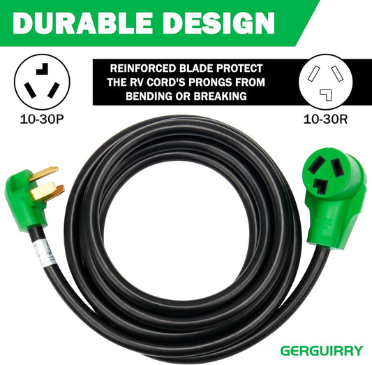15 Ft 3 Prong Dryer Extension Cord - 30A NEMA 10-30P to 10-30R, 125V/250V 10-AWG Gauge, UL Listed - Gerguirry