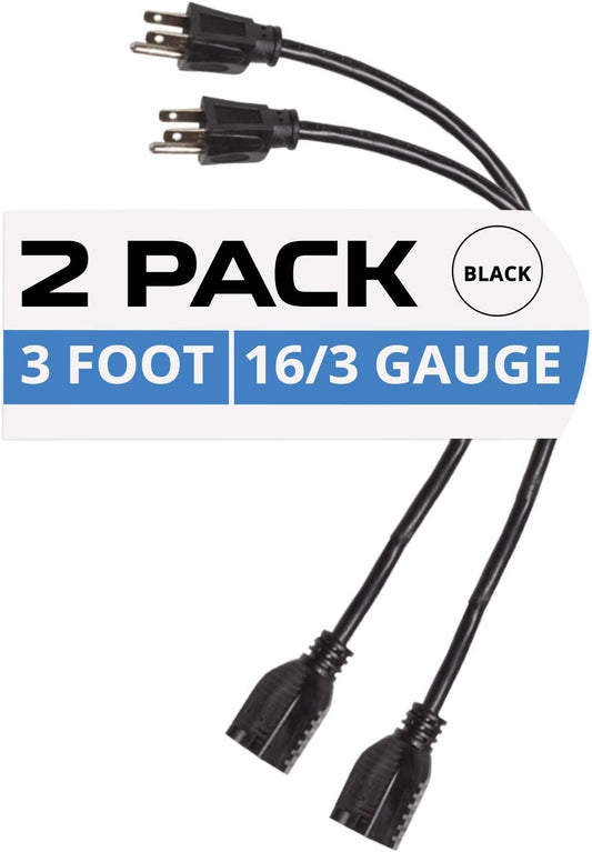 2-Pack 3ft Outdoor Extension Cord - Heavy Duty Power Cable for Indoor & Outdoor Use - ETL Listed - 16 SJTW AWG 3 Prong Belllights Power Cord