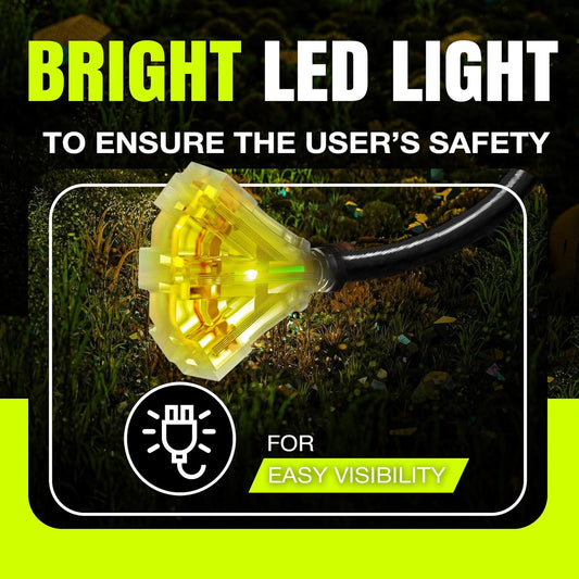10 ft Heavy Duty Lighted Extension Cord by Watt's Wire - 10 Gauge SJTW Indoor/Outdoor Cord Splitter