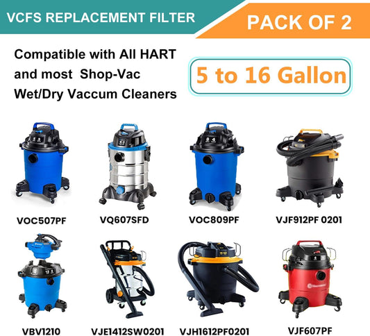 2-Pack LHARI Standard Cartridge Filter VCFS Compatible with Vacmaster & Hart Wet/Dry Vacs