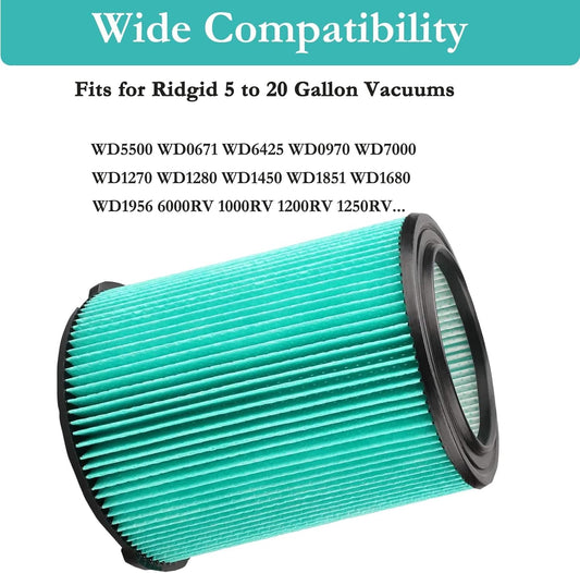 2 Pack Vf6000 HEPA Filters for Ridgid Shop Vac 5-20 Gallon Wet Dry Vacuums WD5500 WD0671 WD6425 WD7000 WD1280 WD1851 WD1680 WD1956 RV2400A 1400RV RV2600B