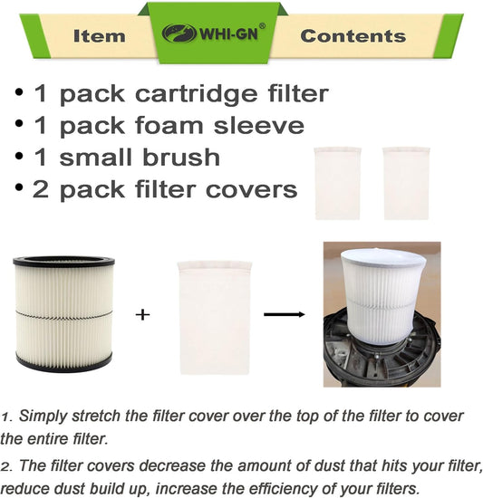 Replacement Cartridge Filter Set for Shop Vac 90304 90350 90333 90137 9030400 Vacuum Cleaner - Includes Foam Sleeve & Retaining Band - 14 Pieces
