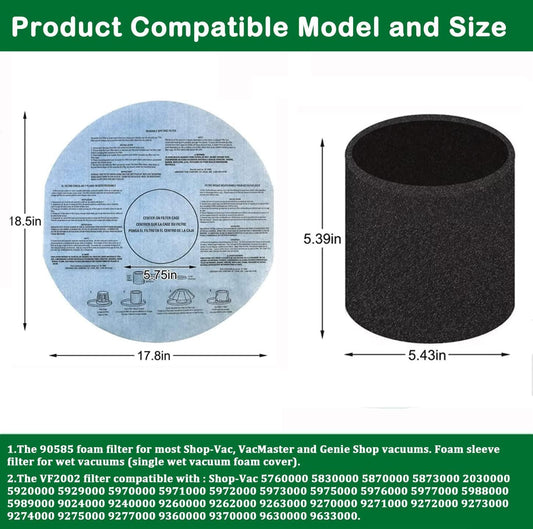 Shop Vac Wet/Dry Vacuum Cleaner Filters Combo Pack - Foam Sleeve + Dry Filter Discs + Retaining Band - Replacement Parts for Vf2002 - 10PCS