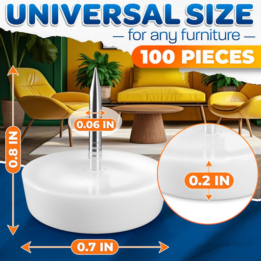 100 Pack Nylon Chair Leg Floor Protectors - Durable Nail-in Sliders for Wood Floors - Easy to Install, Smooth Gliding, Prevents Scratches and Dents