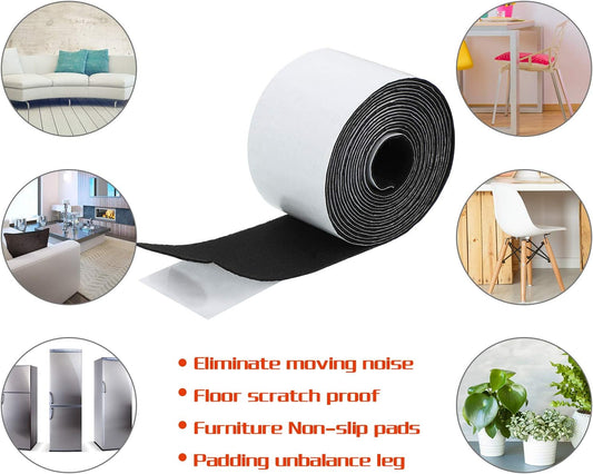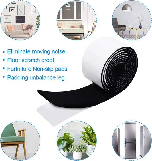 2 Pack 20 Ft Black Felt Strips with Adhesive Backing - Self Adhesive Tape Roll for Furniture Pads, Chair Wall Protector