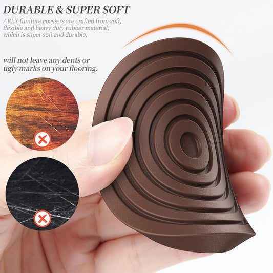 8 Pack Brown Rubber Furniture Coaster Pads - 2.5 Inch Non-Slip Hardwood Floor Protectors by ARLX Furniture Co.