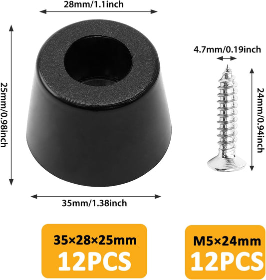 Black Rubber Feet with Stainless Screws - 12 Pack, Chair Bumpers Pads for Furniture - 35x28x25mm