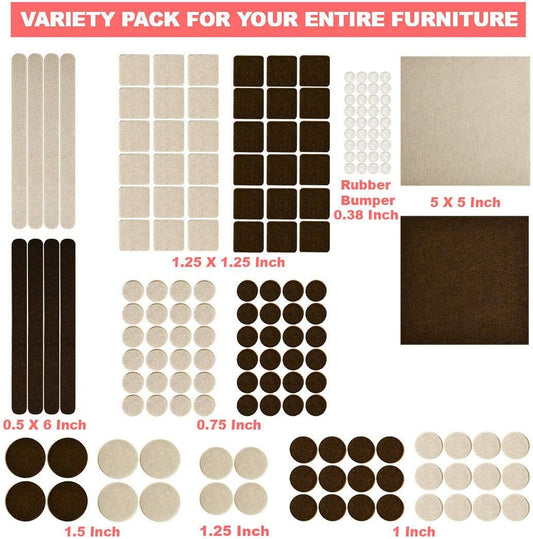 165 Piece Furniture Felt Pads Set - Self Adhesive Floor Protectors for Hardwood & Laminate Flooring with Noise Reduction Bumpers - Variety Sizes and Colors