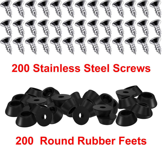 200 Soft Cutting Board Rubber Feet with Stainless Steel Screws - Non Slip Anti-Skid Grips for Furniture, Electronics & Appliances