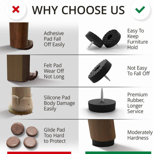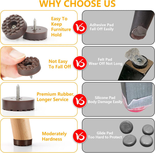 32 Pack 0.95" Screw On Rubber Furniture Feet - Premium Non Slip Pads for Chair Legs - Furniture Grippers for All Surfaces - Protect Floors from Skidding