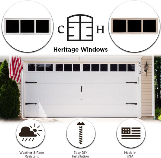 Sandstone Coach House Heritage Décor Garage Door Window Kit - Easy Install Faux Windows - USA Made Decorative Hardware