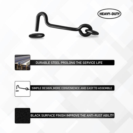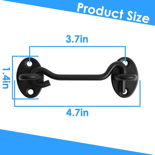 2-Pack Black 4" Heavy Duty Stainless Steel Gate Latch Hook and Eye Lock for Sliding Door, Barn Door, Garden, Cabinet, Windows - Easy Installation with Mounting Screws