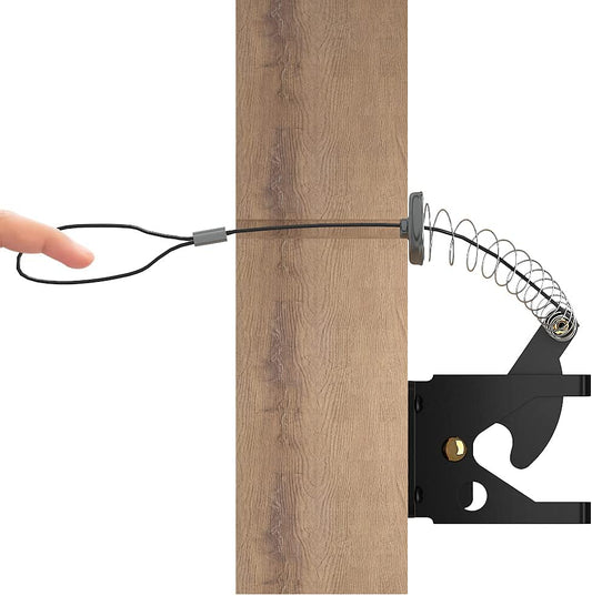 skysen Self Locking Black Fence Gate Latch with Stainless Steel Spring Cable Pull - Post Mount Carbon Steel (JLXSDS-1)