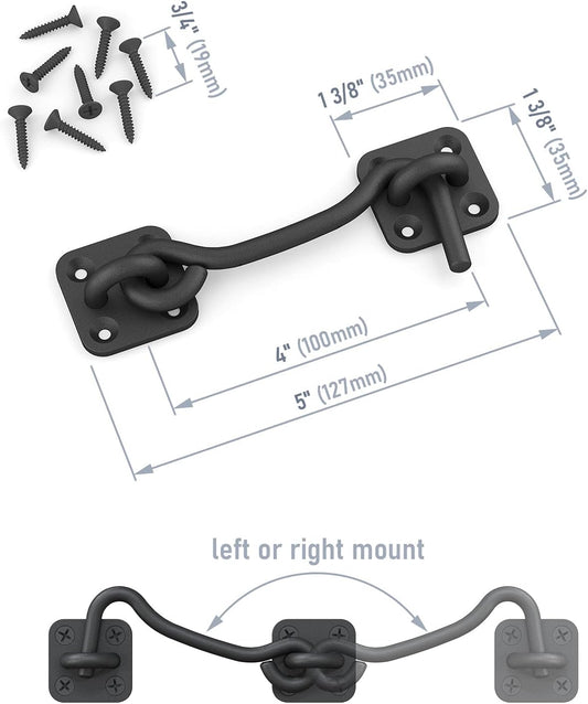 2 Pack Black Hook Lock for Doors, 4 Inch Barn Door Latch with Screws - Gate Latches for Fence, Outdoor Window, Cabinet, Bathroom