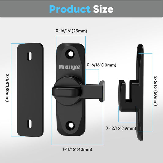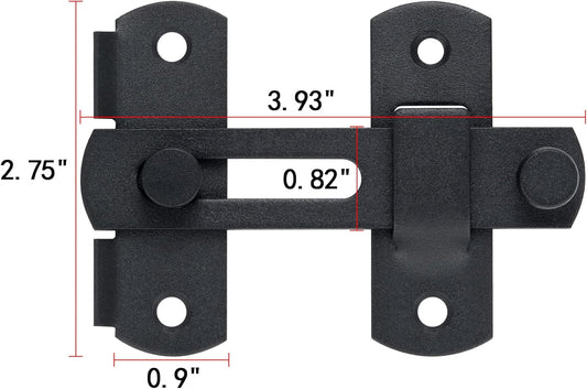 Black Barn Door Lock for Privacy - 90/180 Degree Flip Sliding Door Latch for Garden, Bathroom, Window, Outdoor, Cabinet - Single Pack
