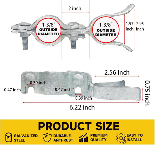 Heavy-Duty Galvanized Gate Fork Latch for Chain Link Fence Gates, 1-3/8" OD, with Padlock Hole - Complete Set (2 Pack)
