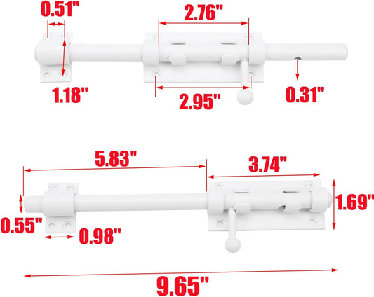 9.65" Heavy Duty Stainless Steel Slide Bolt Gate Latch with Padlock Hole - White Barrel Bolt Lock for Barn, Yard, Fence, Shed