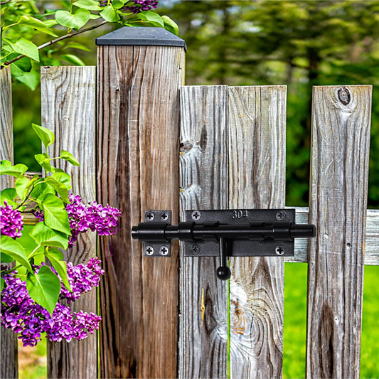 Heavy Duty Slide Bolt Gate Latch with Padlock Hole - Outdoor Gate Lock for Wooden Fences, Barns, Sheds, and Gardens - Black Finish