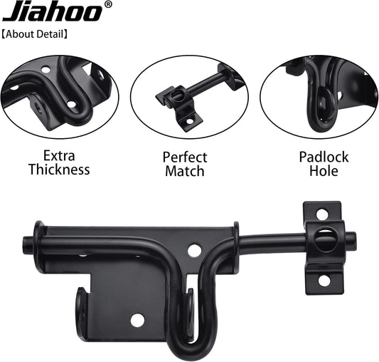 2 Pack Black Heavy Duty Slide Bolt Gate Latch with Padlock Hole for Wooden Fence Shed Door