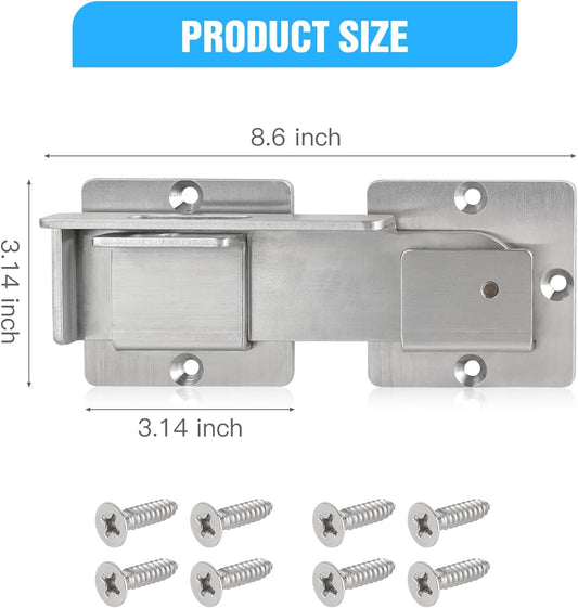 Heavy Duty Steel Safety Gate Door Hasp Latch 90 Degree, 7-3/4" Extra Thick Lock for Fence Gate, Barn Door, Shed, Closet, Cabinet - Black Finish