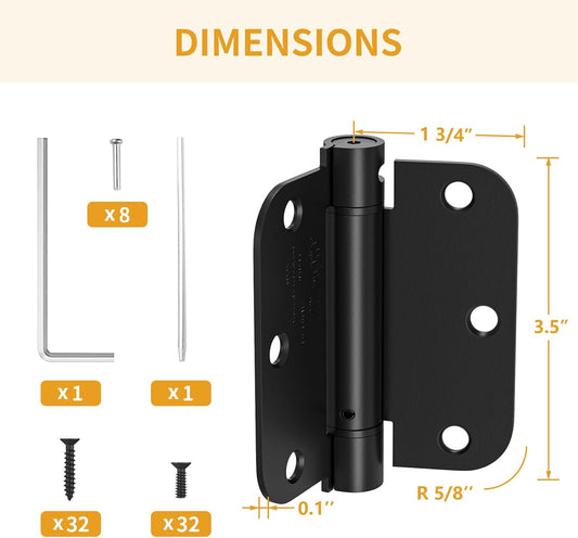 4 Pack of Luxbaro 3.5 Inch Matte Black Self Closing Door Hinges - Adjustable Tension, 5/8'' Radius, UL Listed - Ideal for Garage and Front Doors