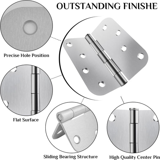 18 Pack Satin Nickel 3.5" Interior Door Hinges for Bedroom Doors - Brushed Nickel Finish, 1/4" Radius, Small Rounded Corner - Standard Bifold Residential Hinge