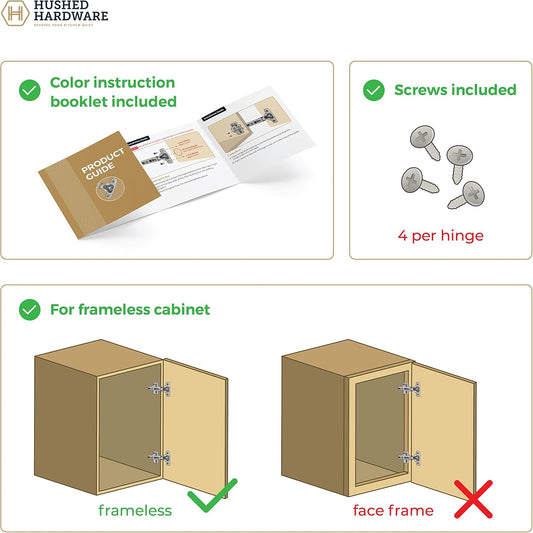20 Pack Brushed Nickel Self Closing Cabinet Door Hinges for Kitchen Cabinets - 1/2" Overlay Partial Wrap Around Hinges with Screw & Bumper