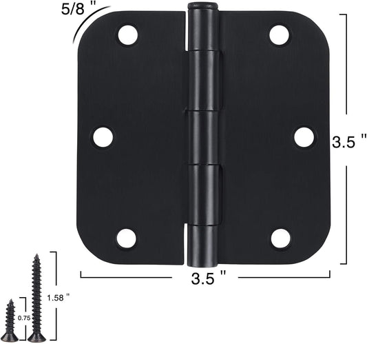 30 Pack Matte Black 3.5 x 3.5 Inch Interior Rounded Door Hinges with 5/8" Radius - Heavy-Duty Black Hinges for Standard Bedroom Office Door Hardware