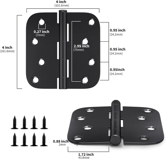 3 Pack Matte Black 4 Inch Door Hinges with 5/8" Radius Corners - Heavy-Duty Hardware for Interior and Exterior Doors