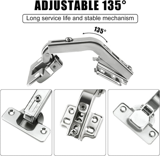 135 Degree Lazy Susan Hinge Face Frame Plate for Folded Door - 1 Pair, Cold Rolled Steel Metal Hinges for Corner Cabinet