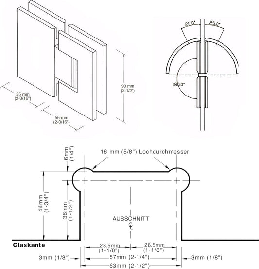 180 Degree Brass Glass Shower Door Hinges Kit, Heavy-Duty Replacement for 10-12mm Frameless Doors, Chrome Finish