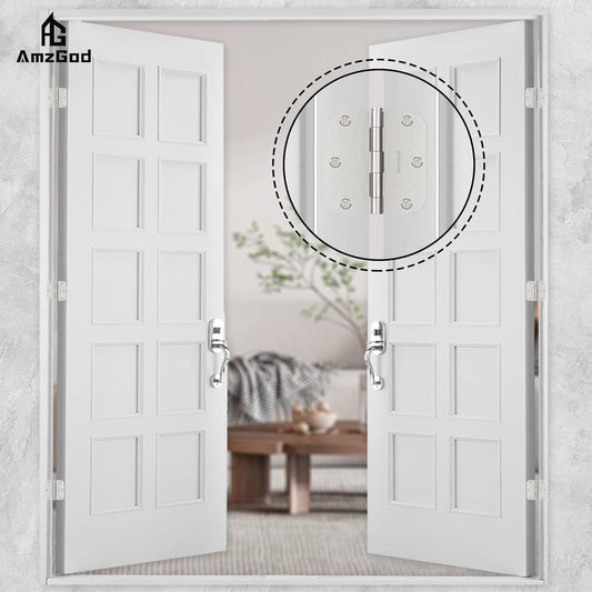 30 Pack Brushed Nickel Door Hinges 3.5 Inch Rounded Interior Satin Nickel with 5/8" Radius - Residential Standard Silver Door Hardware