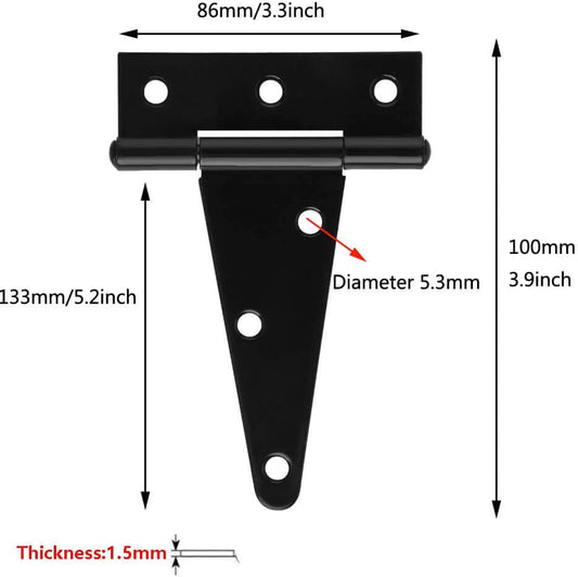 4Pack 4 Inch T Strap Heavy Duty Shed Door Hinges in Black Wrought Iron - Barn Door Gates Tee Hinge Hardware