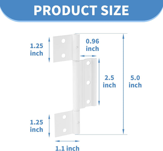 4-Pack Matte White Screen Door Hinges, 1/8 Inch Grooved Center Aluminum Hinges for Interior Exterior Doors - Kitchen Cabinet Compatible