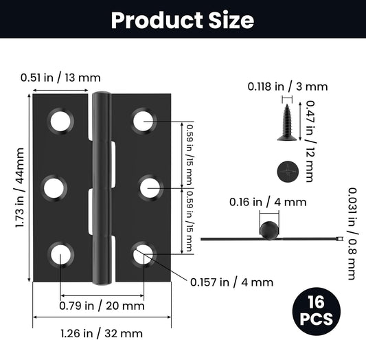 16 Pack Small Stainless Steel Door Hinges, 2 Inch Window Folding Hinges with 96 Screws - Black Finish