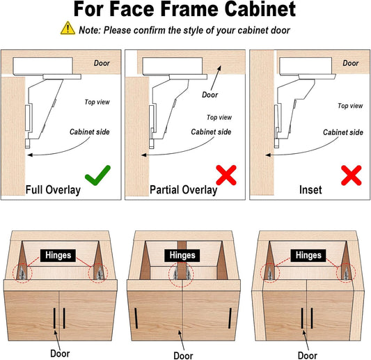 2 Pack Silverline Face Frame Soft Close Cabinet Door Hinges - 1/2 Inch Overlay, Metal Dampers, Heavy Duty Steel for Kitchen/Bathroom
