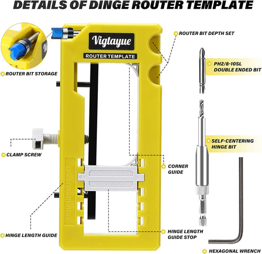 Adjustable Door Hinge Jig & Mortiser Tool for 3-5" Length Hinges - Square, Radius 1/4" & 5/8" - Easy Installation & Alignment
