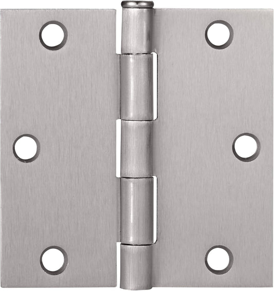 Design House 181479 3-Pack 3.5" x 3.5" Interior Door Hinges, Square Corners, Satin Nickel, Heavy Duty Steel, Left/Right-Handed