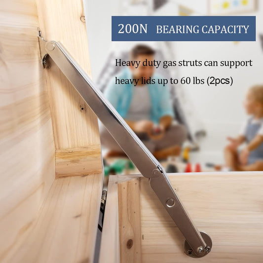 Heavy Duty Gas Struts for Wooden Box - Soft Close Lid Support Hinges - Slow Lowering Pneumatic Lifters