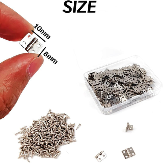 100PCS Mini Metal Hinges Hardware for Furniture, Wooden Box, Jewelry Chest, Dollhouse - 10 x 8mm, 180 Degree Rotation